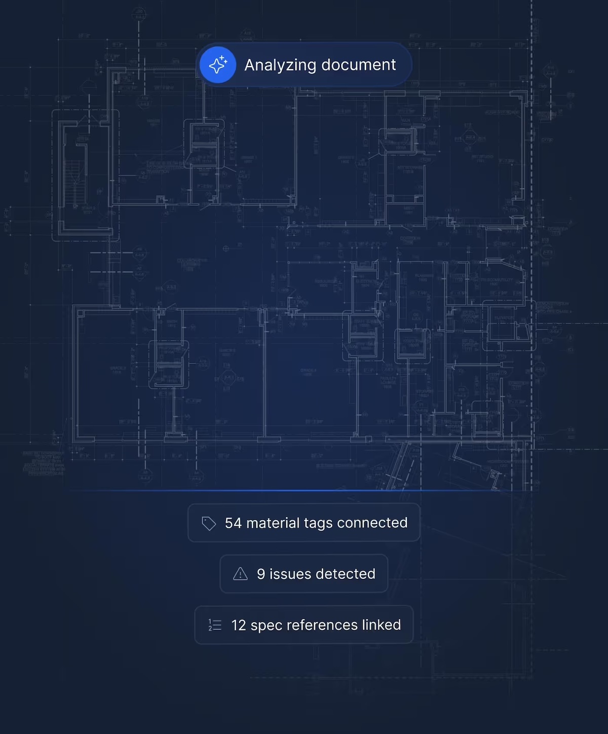 Every result is traceable to the exact drawing detail or specification reference behind it. The tool transforms static PDFs into a seamless interactive drawing experience powered by an underlying knowledge graph, allowing project teams to easily gain visibility into project status, changes, and needs.